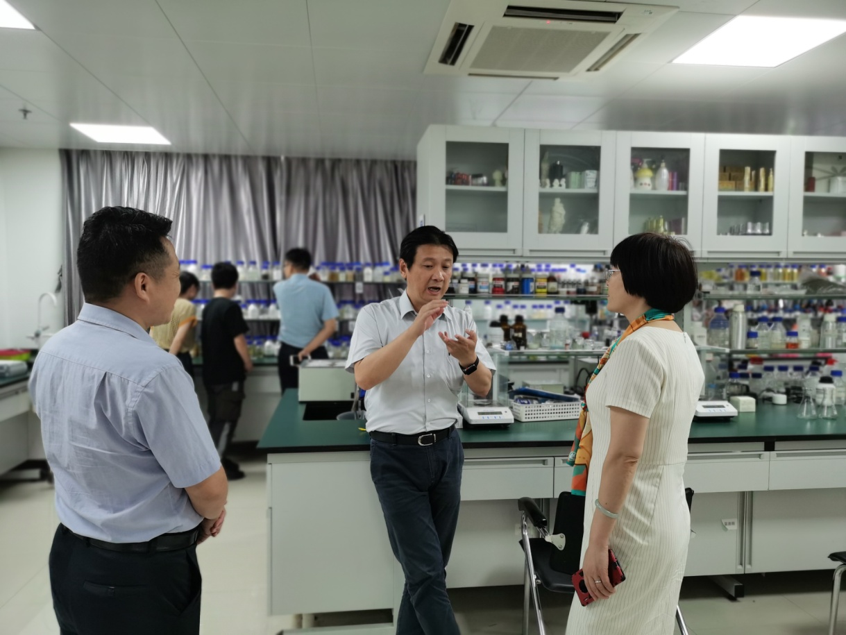 厦门医学院公共卫生与医学技术系主任韩银淑教授、化妆品技术与工程专业负责人王贵弘教授、陈芳芳副教授、化妆品技术与工程教研室主任付珊珊副教授出席交流会。会上,韩主任对闵院长一行表示欢迎,并介绍了该系历史沿革、人才引进、专业建设、学科特色等情况。闵院长对该系的热情接待表示感谢,并介绍了到访的目的、学校和德赢Vwin官方区域合作伙伴历史沿革、学科专业建设等情况。随后,王贵弘教授从专业现状、培养目标、建设思路、课程设置以及实习就业等方面详细介绍了该系化妆品技术与工程专业建设的做法和经验。双方与会人员围绕人才培养方案、专业建设、教学管理等方面进行了深入交流。会后,闵清院长一行参观了该系化妆品技术与工程专业实验室,并就实验室建设情况进行了广泛交流。